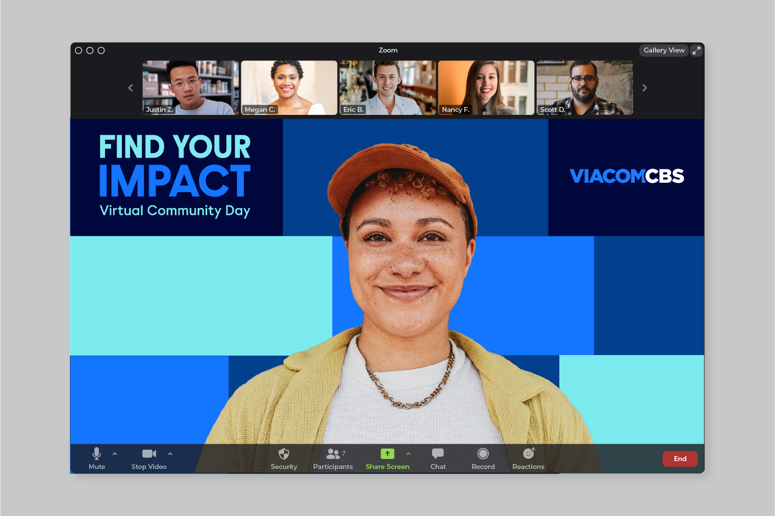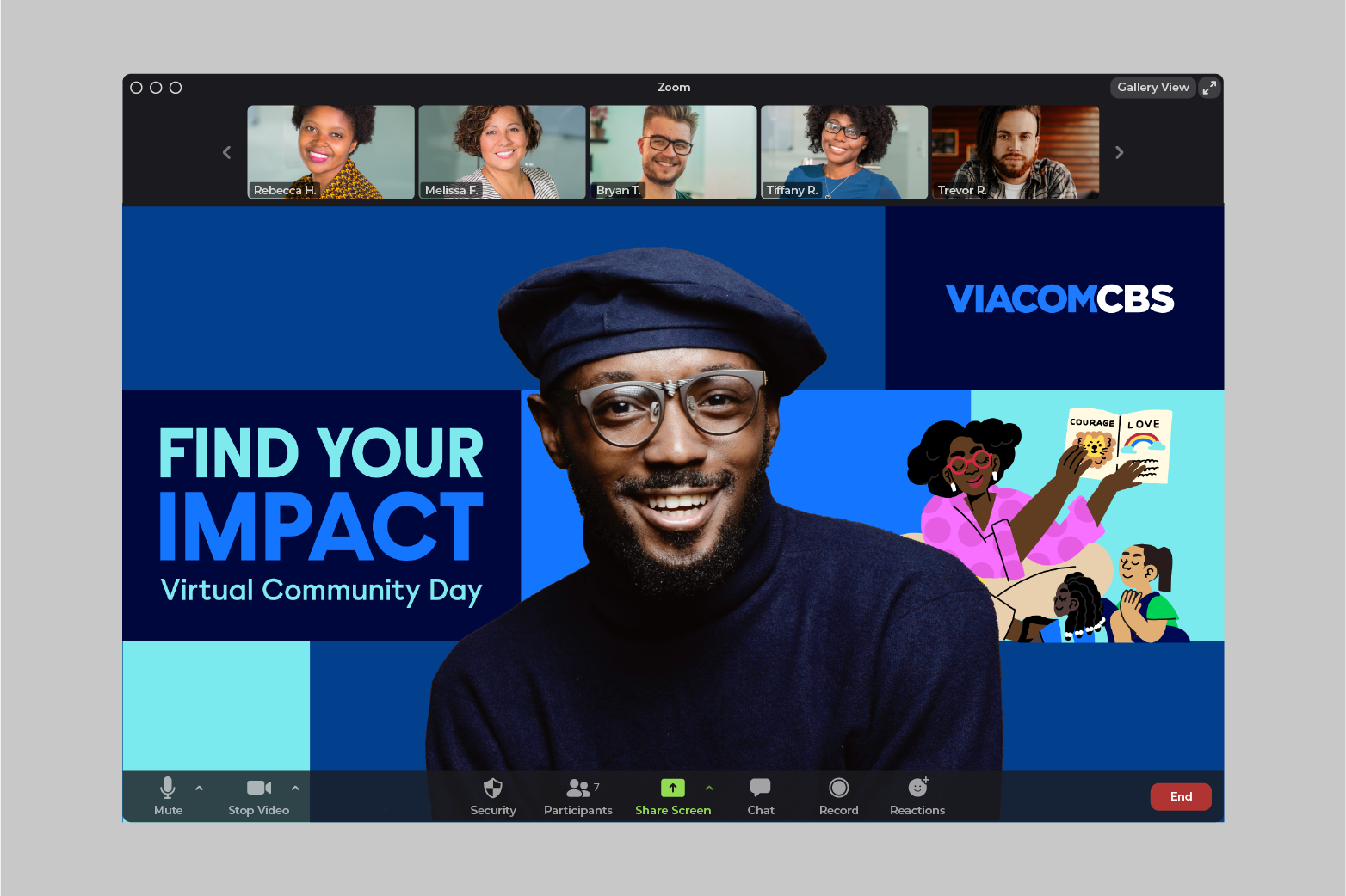 Slack/Zoom backgrounds were designed to enhance ViacomCBS's virtual community service opportunities, boosting employee pride and enthusiasm.